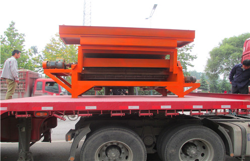 2、礦粒經(jīng)輸送皮帶被送進(jìn)上磁輥選別,因為褐鐵礦,褐鐵礦,氧化錳,炭酸錳礦的礦粒有磁性,馬上被強(qiáng)磁場吸咐在磁輥上,脈石粒(雜石、碎石土)因為沒有磁性(磁性太弱),磁輥的強(qiáng)磁鐵對它不發(fā)病吸附力,跟隨磁輥的更改,礦粒一向被吸在磁輥上,而脈石粒在磁輥轉(zhuǎn)到前端開發(fā)方向時被拋出去掉在隔礦板的前邊(根據(jù)修改隔礦板視角的尺寸可調(diào)節(jié)精礦的層級),礦粒再次被磁輥送到脫磁區(qū)時全自動跌入一選集礦斗搜集為精礦制成品。